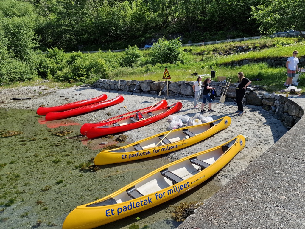 "Miljøkano" og "Et padletak for miljøet" samt lions logo og leo-logo.